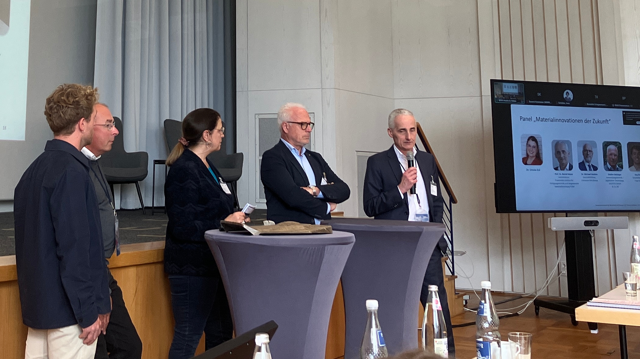 Dr. Rosita Cottone, wissenschaftspolitische Referentin im Referat 523 Werkstoffinnovationen; Hereon des Bundesministeriums für Forschung, Technologie und Raumfahrt BMFTR wies auf die Möglichkeiten im neuen Materialforschungsprogramm »Mat2Twin« hin, welches die Entwicklung resilienter und kreislauffähiger Wertschöpfungsnetzwerke für innovativeWerkstoffe in den Fokus rückt (Materialinnovationen für die Transformation von Wirtschaft und Gesellschaft (Mat2Twin) - BMFTR). Cottone betonte die gute Abstimmung und Vernetzung mit der europäischen Ebene sowie die fruchtbare und langjährige, resortübergreifende Zusammenarbeit mit dem Referat IVB4 (Bauwirtschaft, Leichtbau / Neue Werkstoffe) des BMWE.